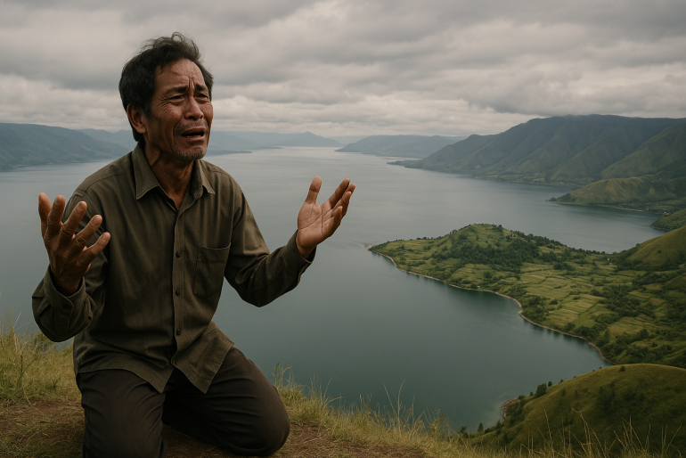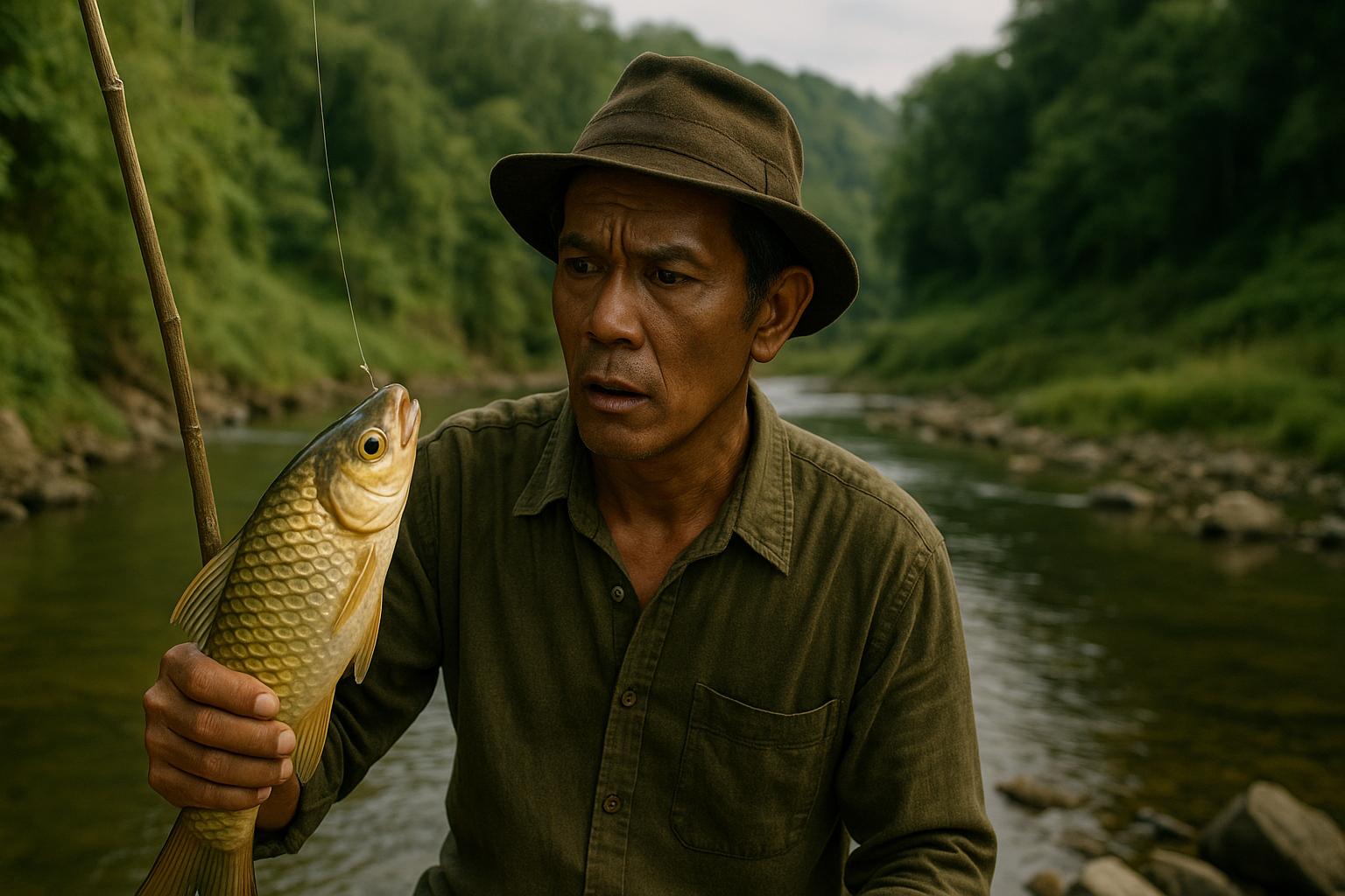 Suatu hari, setelah bekerja keras di ladang, Toba merasa sangat lapar dan memutuskan untuk pergi memancing di sebuah sungai kecil yang tidak jauh dari desanya. Di sana, ia berhasil menangkap seekor ikan besar yang sangat indah. Ikan itu memiliki sisik yang berkilau seperti emas dan tampak berbeda dari ikan-ikan biasa. Toba merasa sangat senang dan berencana untuk memasak ikan tersebut untuk makan malam. Namun, saat ikan itu sudah berada di tangan Toba, ikan tersebut tiba-tiba berbicara dan berkata, “Tuan, saya sebenarnya bukan ikan biasa. Saya adalah seorang putri dari kerajaan bawah laut. Jika Tuan melepaskan saya, saya akan memberi Tuan kebahagiaan dan kehidupan yang lebih baik.”