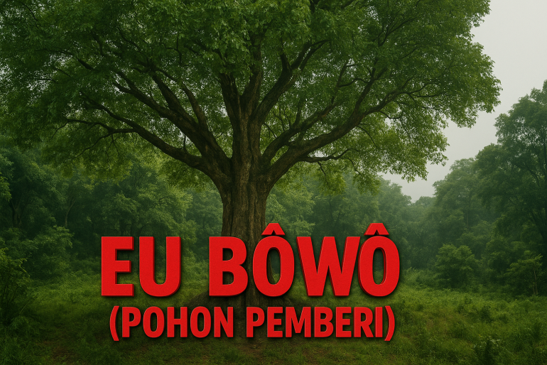 Pada zaman dahulu, di sebuah hutan lebat di Pulau Nias, tumbuhlah sebuah pohon yang luar biasa bernama Eu Bowo. Pohon biasa. Ia dikenal sebagai pohonn pemberi segalanya buahnya bisa dimaka, daunya menyembuhkan penyakit, dan batangnya bisa berubah menjadi alat apa pun ang dibutuhkan. Masyarakat di sekitarnya sangat bersyukur atas keberadaan pohon ini. Mereka hidup rukun, saling membantu, dan selalu mengambil hasil pohon secukupnya.
