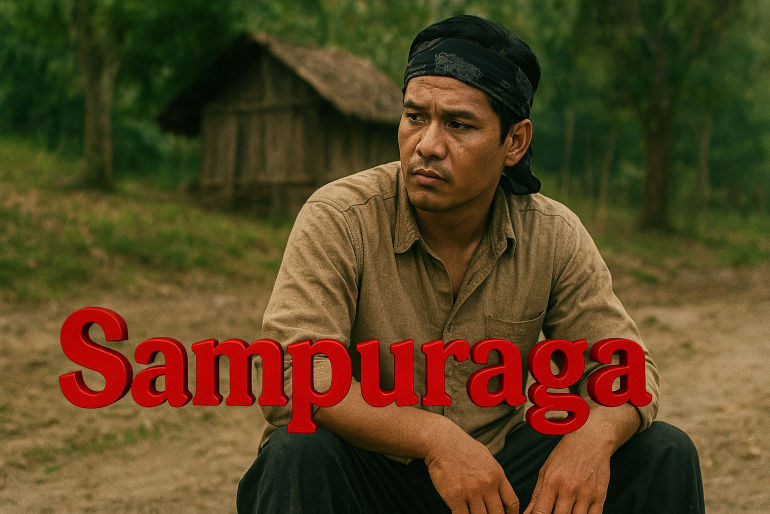 Sampuraga kemudian berkata bahwa wanita tua tersebut bukanlah ibunya. Dia juga berkata bahwa ibunya sudah meninggal dunia sejak lama. Dirinya kemudian memerintahkan para pengawal untuk mengusir sang ibu keluar dari pesta. Ibu Sampuraga tentu merasa sedih mendengar perkataan putranya tersebut.