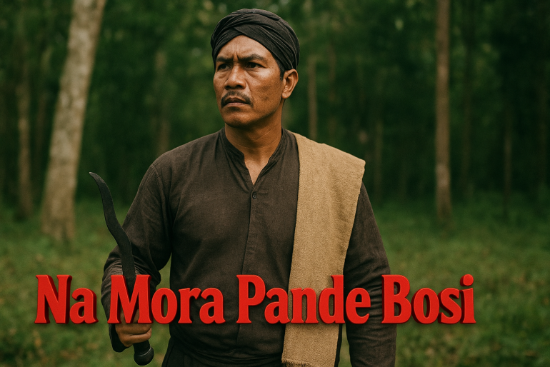 Tiba-tiba muncullah seorang gadis cantik terjadilah dialog. Na Mora Pande Bosi Lubis begitu terpesona melihat gadis itu, akhirnya dia mengikuti gadis tadi sampai ke tempat tinggalnya, dan keduanya menjadi suami istri. Kerajaan Hatongga menjadi heboh, raja memerintahkan semua orang untuk mencari Na Mora Pande Bosi Lubis. Terakhir gong sakti dipukul (dibunyikan) Na Mora Pande Besi Lubis sadar, dan dia kembali pulang menemui istrinya dengan membawa keris tidak bersarung lagi.